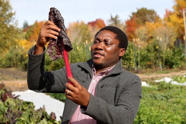 When he got to Pullman and saw WSU’s organic farm, he burst out laughing. It was only 2 1/2 acres — about half the size of his own farm in Nigeria. (WSU’s organic farm is now 30 acres.) Still, he believed he’d come to the right place. Before his money ran out, he secured a research position at WSU to help fund his master’s degree and, later, his Ph.D.