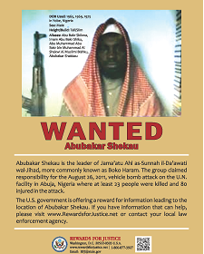 Abubakar Shekau is the leader of Nigeria-based, Jama’atu Ahl as-Sunnah il-Da’awati wal-Jihad, more commonly known as Boko Haram.  The group is responsible for the August 2011 vehicle-bomb attack on a United Nations facility in Abuja, Nigeria, which killed at least 23 people and injured 80.